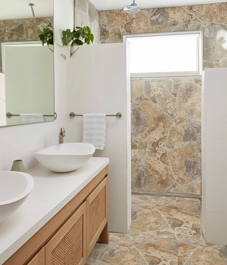 Rockface wall cladding is crafted from Limestone, Marble, Travertine, and Volcanic Stone. Each material brings a unique texture, making it ideal for both interior and exterior applications.